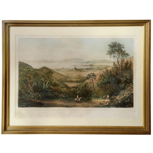 • EUGÈNE CICÉRI (Paris, França, 1813 - Marlotte, França, 1890) - Rio de Janeiro tomado da Boa Vista da Tijuca. Extraordinária vista com primeiro plano devido a Hagedorn. Litografia original em cor. G. LEUZINGER, Rio de Janeiro, Lemercier, Paris, 1851. Com moldura e passe-partout. 55 x 75 cm (MI). 72 x 90 cm (ME). Bibliografia Gilberto Ferrez. Iconografia do Rio de Janeiro. Volume 1, à pág. 511.