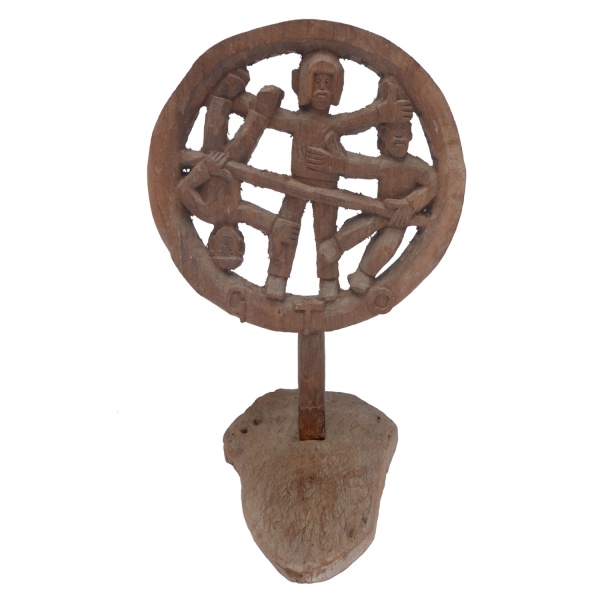 • GTO (Geraldo Teles de Oliveira) - Arte Popular Brasileira. Figuras. Escultura em madeira entalhada e assinada. 42 x 28 cm (MT). 3 x 28 x 17 cm (base).