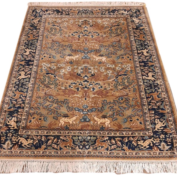 • Belíssimo Tapete Tree of Life ou Árvore da Vida - Tapete persa de seda pura com base de lá medindo 204 x126 cm. Adquirido na Índia em galeria de arte, esse tapete de seda é rico em detalhes de desenhos que incluem animais e árvores estilizadas. Uma peça única e delicada em tons neutros de azul, avelã, cinza e branco.  Os tapetes Tree ofLife são muito apreciados ao redor do mundo,  frequentemente são considerados obras de arte pela originalidade, por serem peças únicas que podem alcançar valores muito elevados. Nunca usado e em perfeito estado.