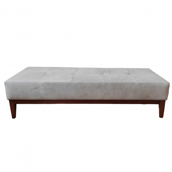 • FERNANDO JAEGGER (Santa Cruz do Sul, Rio Grande do Sul, 1956). Designer Brasileiro - Banqueta de formato retangular com estrutura em madeira e detalhes em couro natural. 42 x 130 x 70 cm.. Este lote encontra-se no endereço do comitente em Campos Elíseos, SP. A retirada precisa de agendamento prévio com o nosso escritório no telefone 11;5044.1228