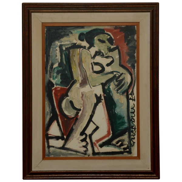 • MARTINS DE PORANGABA (Porangaba, São Paulo, 1944)  Nu em Pé. Óleo s/ Eucatex. Ass. e datado 77, cid. 76 x 56 cm (MI). 97 x 77 cm (ME). Pintor, desenhista, gravador e professor. Fixa residência em São Paulo, e cursa desenho, pintura e modelo vivo na Associação Paulista de Belas Artes, entre 1967 e 1970. Na década de 70, estuda gravura com Paulo Mentem e modelagem com Olinda Dalma; e funda o Atelier J. Martins, em 1972. Em 1980, leciona pintura na Escola Panamericana de Artes.