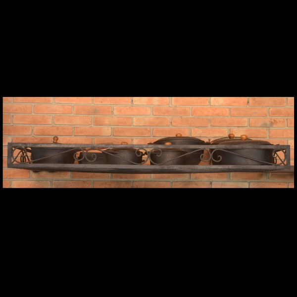 • Paneleiro de parede em ferro. Acompanham 6 panelas e 1 travessa (Panelas da Vovó A legítima). Marca da manufatura no fundo das peças. 12 x 134 x 80 cm. Paneleiro de parede em ferro. Prateleiras em madeira. 80 x 180 x 30 cm. Esta disponivel para ser visto. Este lote encontra-se na Granja Julieta, SP. Retirada com agendamento antecipado em nosso Escritório do Leilão  11.5044.1228