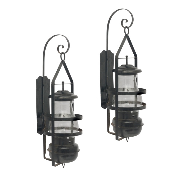 • Par de lanternas de parede de ferro pintado de preto. 51 x 17 x 16 cm.