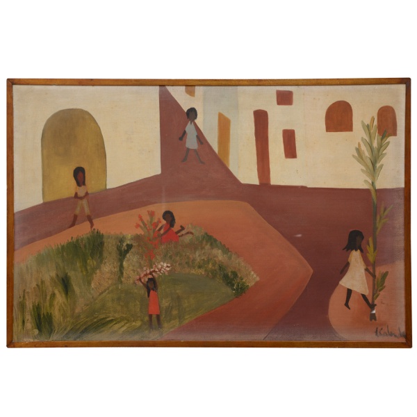 • L. CALENDA  Pracinha, Rio 1964. Óleo s/ tela. Ass. cid e verso. Titulado e datado. 50 x 72 cm (MI). 52 x 75 cm (ME).