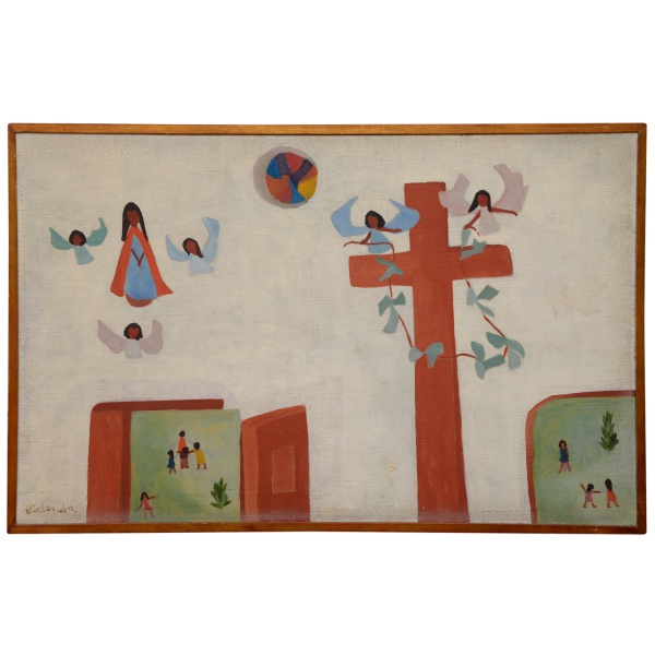 • L CALENDA  Igreja do Interior, Rio 1964. Óleo s/ tela. Ass. e titulado no verso. 4 x 80 cm (MI). 56 x 83 cm (ME).