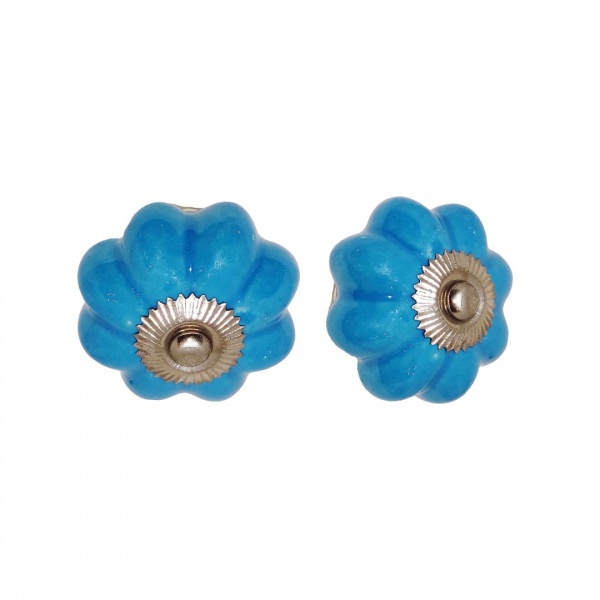 • Conjunto de 4 puxadores de gaveta em vidro opalina azul. 5 x 5 cm,