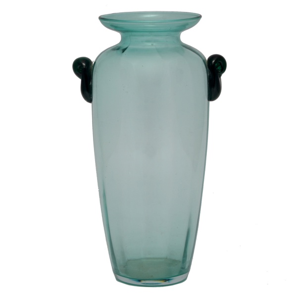 • Vaso em vidro na cor azul celeste. 27 x 15 cm.