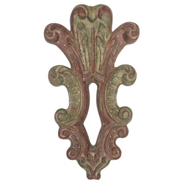 • Talha em madeira policromada e vazada. 50 x 27 cm.