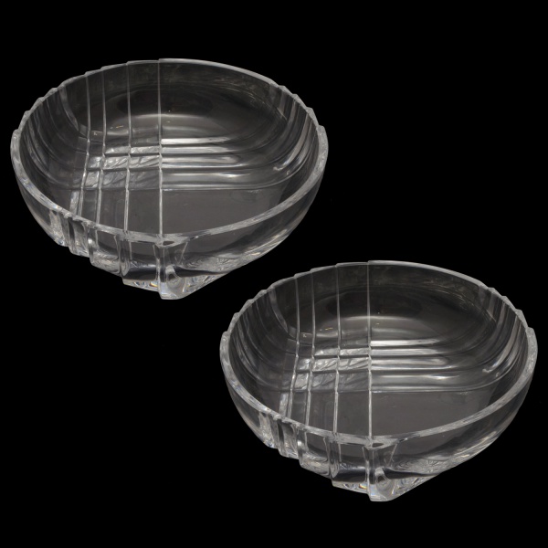 • Par de saladeiras circulares em cristal translucido com elegante detalhes geométricos. 6 x 22 cm.