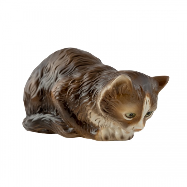 • Ceramiche Boxer. Made in Italy - Escultura de porcelana policromada representado gato deitado. Sob a base marca da manufatura.14 x 26 x 13 cm.