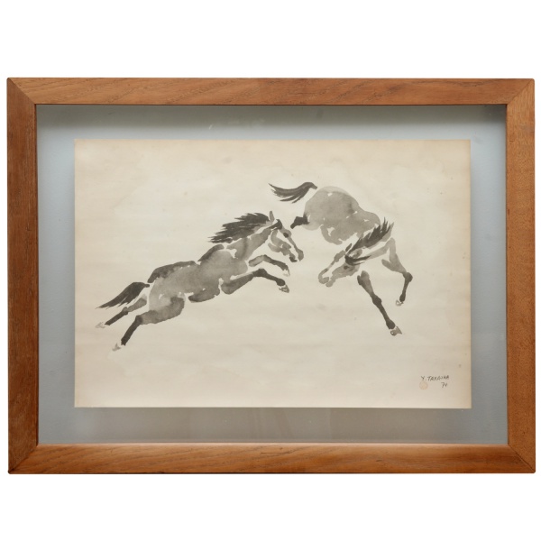 • YOSHIYA TAKAOKA (Tóquio, Japão 1909 - São Paulo,1978)  Cavalos. Nanquim Ass. e datado 74, cid. 32 x 47 cm (MI). 47 x 62 cm (ME). Pintor, desenhista, caricaturista e cenógrafo.