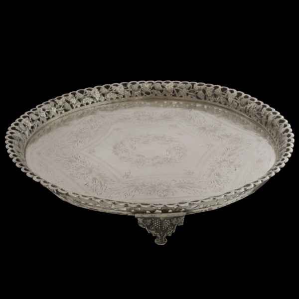 • PORTUGAL. Porto. Séc. XIX - Salva de formato circular em prata de lei portuguesa, lavrada e burilada. Contraste da cidade do Porto e marcas do prateiro. 38 cm. Peso 1k452 gramas.