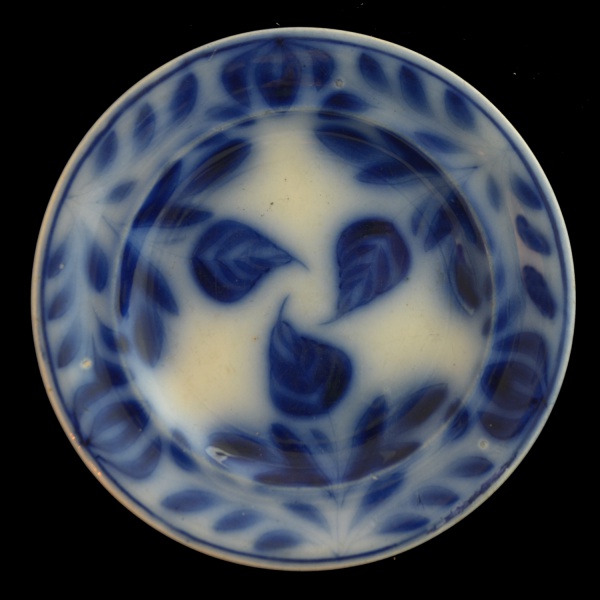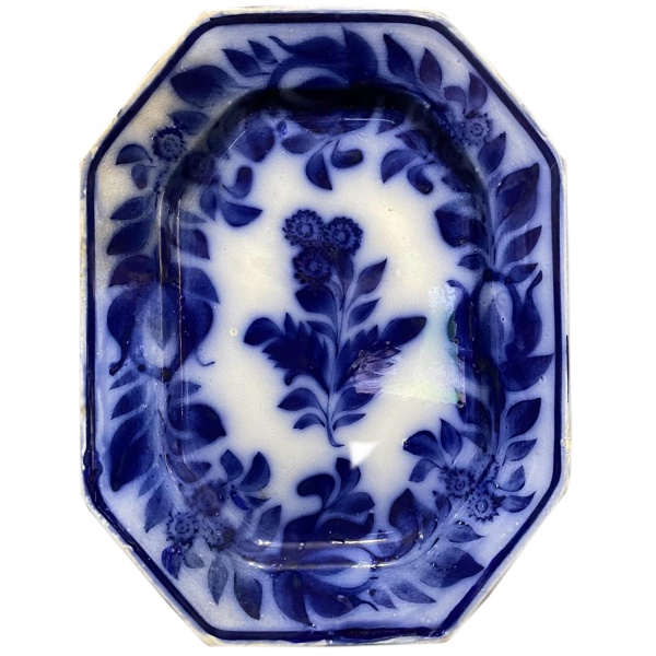 • CHARLES MEIGH. England. Circa 1835-1945. Modelo Mogul - Prato em louça inglesa do séc. XIX. Apresenta decoração com elementos decorativos em tons de azul borrão. Marca da manufatura no verso.