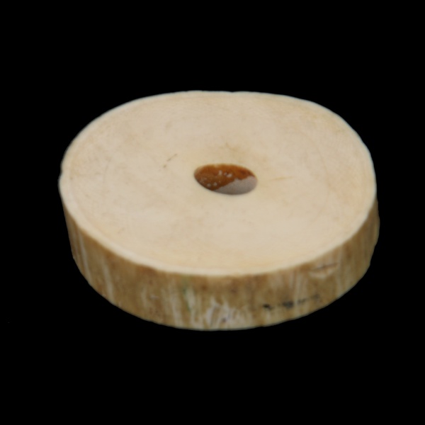 • Séc. XIX - Grande netsuke para lutador de Sumo, no formato de simples rodela de marfim bruto. Tipo de peça, simples e lisa, desprovida de qualquer aspecto decorativo. Simboliza para o guerreiro/lutador japonês o espírito do Xintoismo, presente igualmente no código do Bushido, ao enfatizar os princípios fundamentais de simplicidade e respeito à natureza intocada, caminho para uma vida livre e espiritual, afastada de qualquer interferência humana. 1 x 7 x 6 cm.