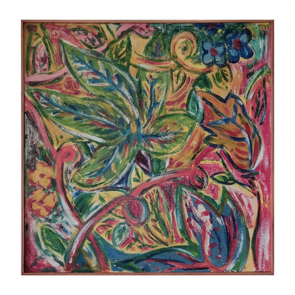 • LUIZA BRARIZ  Composição. Pintura sobre madeira. Ass. 98 x 98 cm (MI). 100 x 100 cm.
