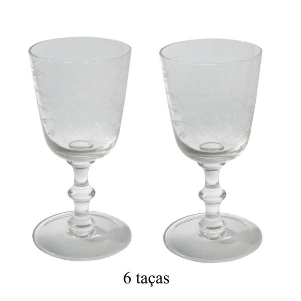 • Conjunto de 6 copos em cristal translucido e com decoração em arabescos. 17 cm.