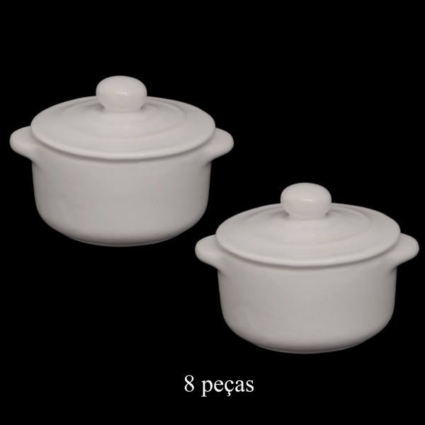 • Conjunto de 8 pequenas panelinhas de cerâmica branca. 8 x 10 cm.