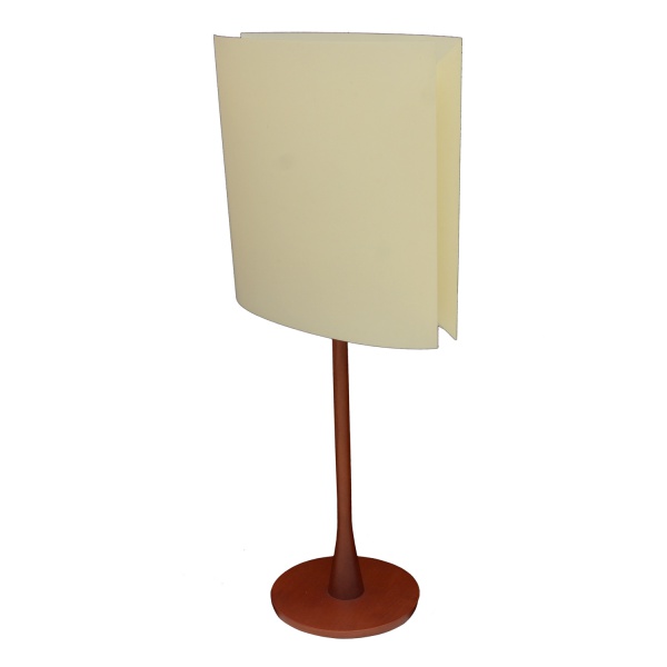 • LAMPE & DOMINICI - Luminária de mesa com design minimalista, caracterizado por uma base e haste em madeira e uma cúpula em material sintético de tom claro. 47 x 23 x 9 cm.