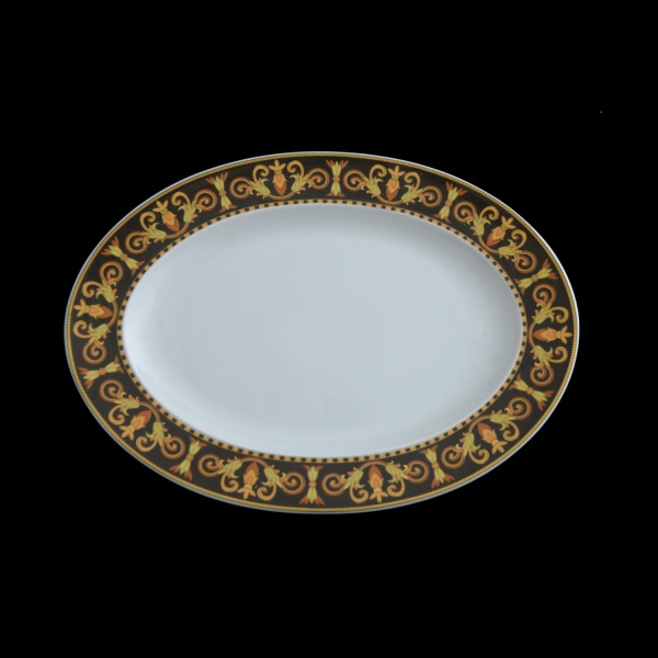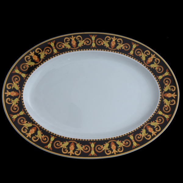 • PAUL WUNDERLICH (German 1927-2010) For VERSACE. Modelo Barroco. Manufatura by Rosenthal - Travessa de formato oval em porcelana alemã  Marca da manufatura no verso das peças. 34 x 25 cm.