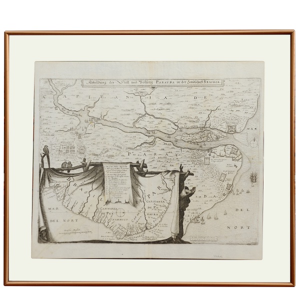 • MAPA BRASIL HOLANDÉS. Circa 1640.(ME). 33 x 37 cm (MI). 43 x 47 cm (ME).