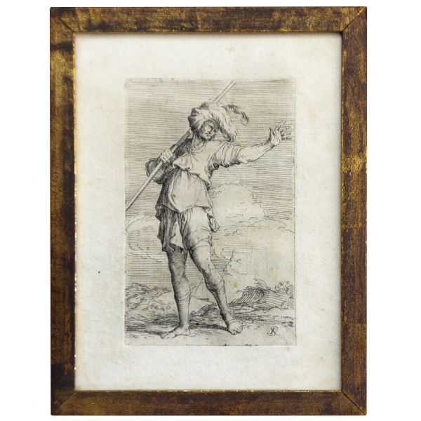 • SALVADOR ROSA - Século XVII - Soldado de Estilo Comum - Gravura em metal. Ass. com as iniciais, cie. 20 x 15 cm (MI). 23 x 18 cm (ME).