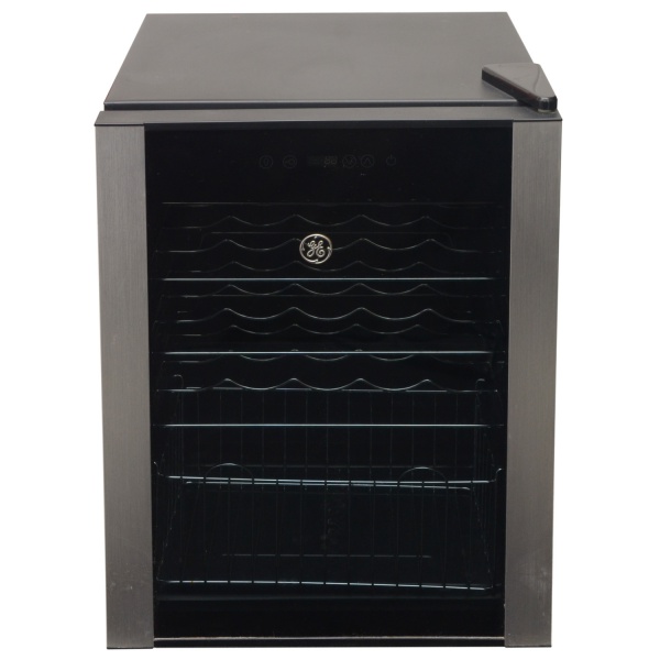 • Adega climatizada para vinhos da marca G&, na cor preta e porta de vidro.