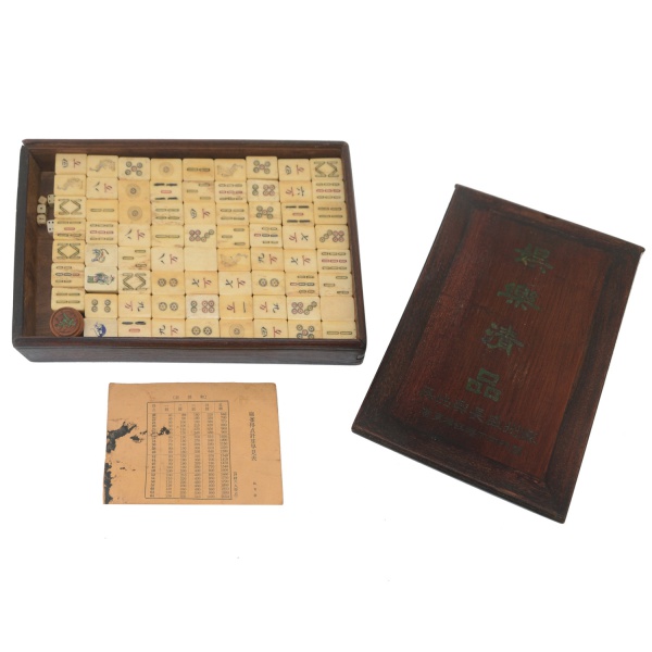 • Jogo chinês de Mah Jong em seu estojo original em madeira de formato retangular. Pedras entalhadas em osso e bambu. Acompanha manual em mandarim. 4.5 x 26 x 16.5 cmR$400,00