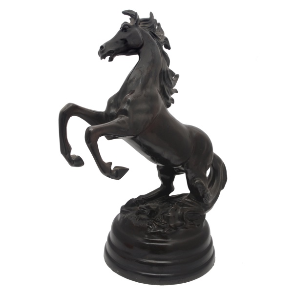 • Grande Escultura em bronze patinado, representando cavalo empinado. Base circular em degraus. Assinatura elegível. 66 x 50 x 30 cm.