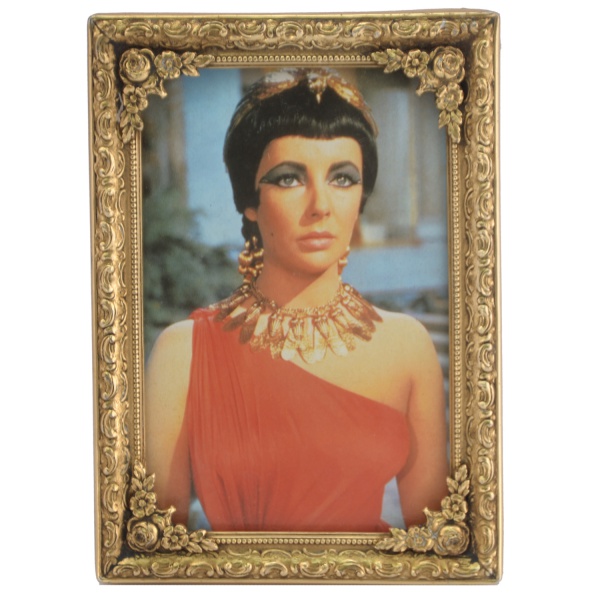 • Porta retrato de formato retangular, esculpido em madeira entalhada e dourada. 11 x 7 cm (MI). 14 x 10 cm (ME).