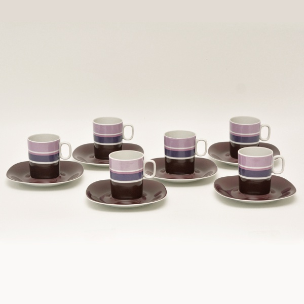 • Conjunto de doze xícaras para café com pires de porcelana. No verso as inscrições "Suisse Langenthal Transition". 7 x 7,5 cm  (xícara). 13 cm (pires).
