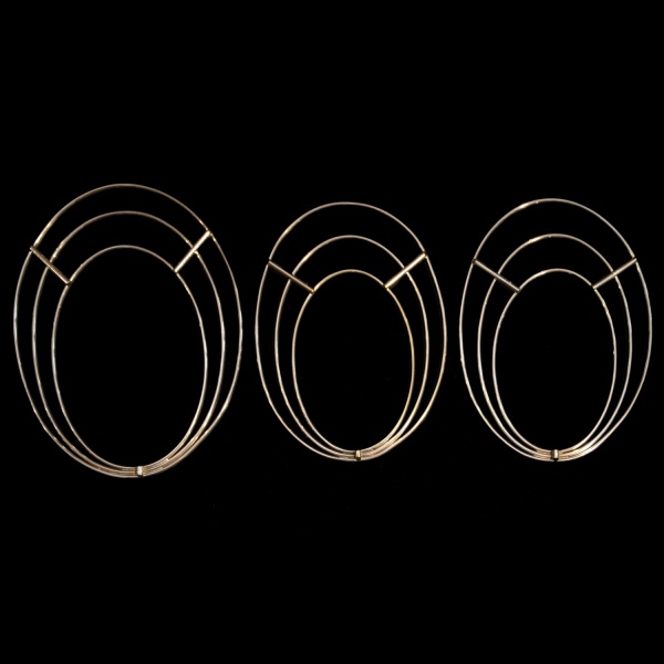 • Conjunto com 3 suportes para travessa de formato oval em metal prateado. 20 x 32 cm e 20 x.28 cm.