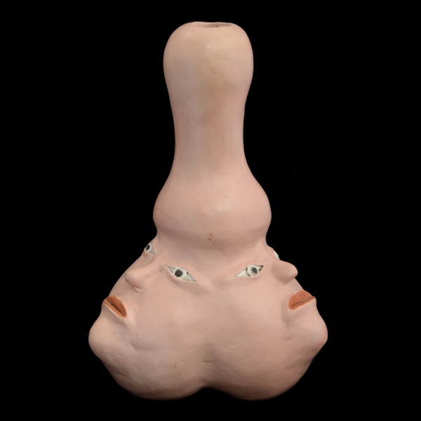 • Arte Popular Brasileira - JOSEFINA, Coqueiro Campo, MG - Três Faces. Vaso em terracota na forma de moringa. Assinada. 32 x 18 cm.