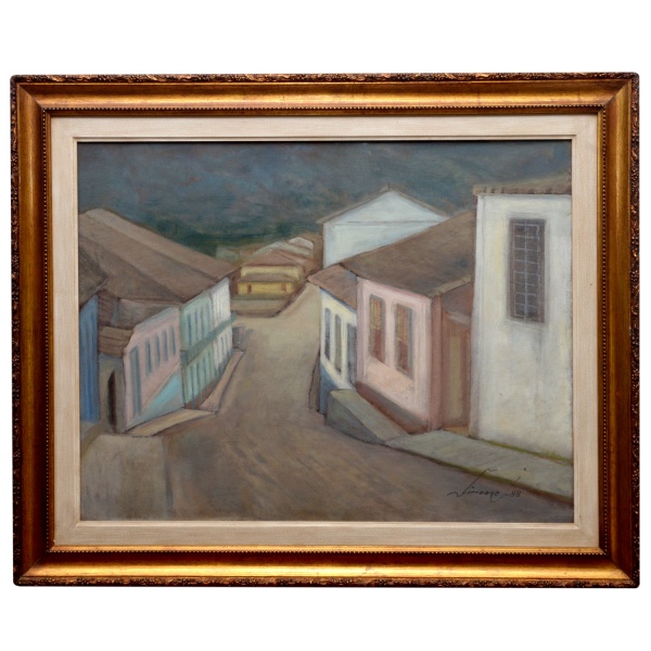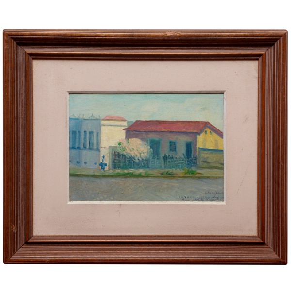 • INNOCENCIO BORGHESE (São Paulo, 1897 - 1985)  Casarão Velho da Rua ...... Óleo s/ tela. Ass. cid. 17 x 24 cm (MI). 37 x 44 cm (ME). Necessita de nova moldura (com danos). Pintor e professor, viveu e trabalhou em São Paulo, sendo ativo participante do Salão Paulista de Belas Artes entre as décadas de 1930 e 1950.
