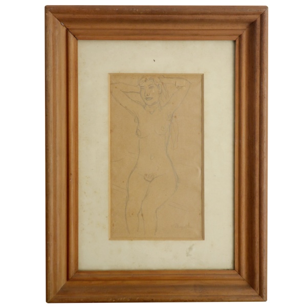 • PERCY LAU (Arequipa, Peru 1903 - Rio de Janeiro, 1972) - Nu Feminino. Desenho. Ass. cid. 30 x 17 cm (MI). 52 x 40 cm (ME). Desenhista, ilustrador, gravador e pintor.